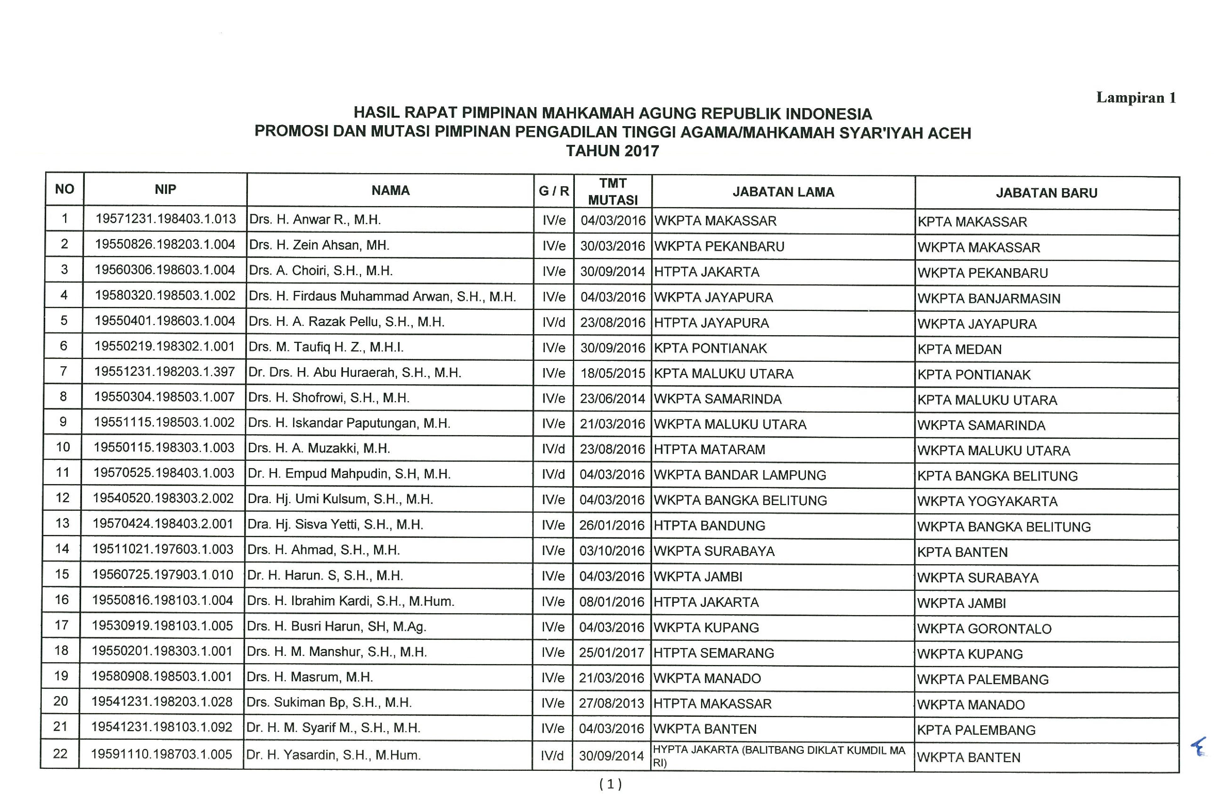 Hasil TPM Promosi Pimpinan Pengadilan Tinggi Agama